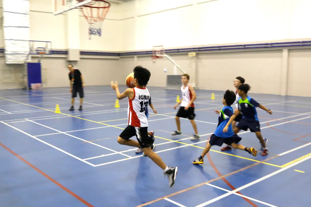 Campus Size: 10 acres (School Profile 24-25). Swimming Pools: 50m Olympic standard pool (8 lanes) and 25m learn-to-swim pool (IGBIS Sports Facilities). Sports Halls: Indoor air-conditioned sports hall accommodating 3 basketball, 3 netball, 3 volleyball, and 12 badminton courts.